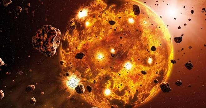 大約在46億年前,那時我們的太陽系還只是上一代恒星遺留下的分子云在宇宙中漂浮著,據推測,在某一天附近的一顆恒星發生了超新星爆發,爆發的沖擊波貫穿了太陽系原始星云。