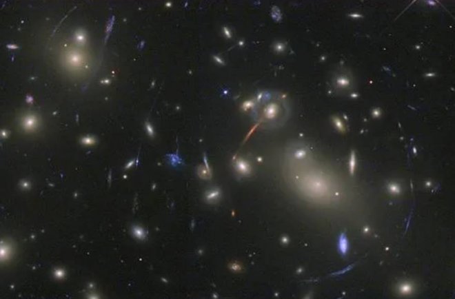 但這個黑洞并不是引力透鏡的觀測對象,而是端坐在作為引力透鏡的前景星系團中的一個星系內。