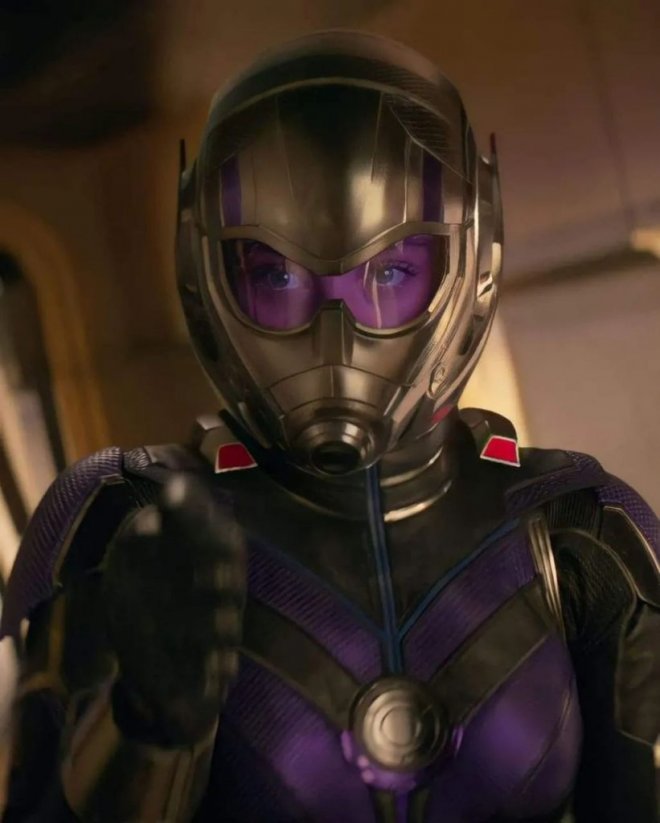 接著,“蟻人之女”凱西也出現,第一組劇照展示了她戴著頭盔和摘下頭盔的外觀。