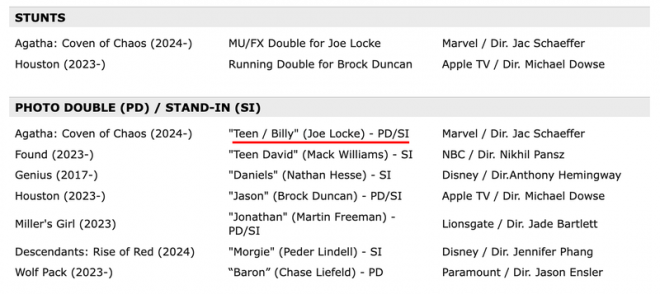 "Teen/Billy (Joe Locke)" photo double and stand-in.