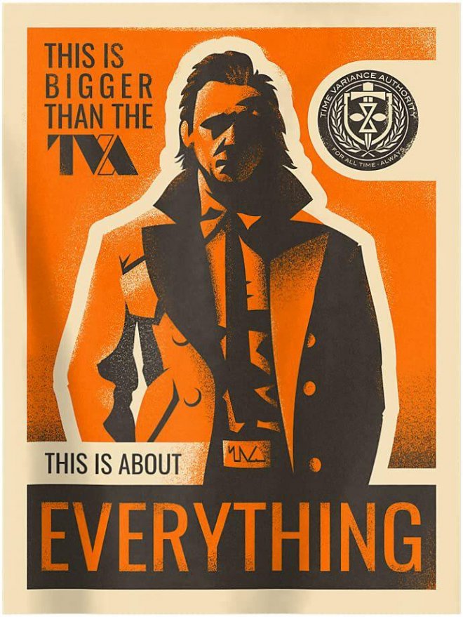MarvelAesthetically similar to the last one, this poster of Loki shows him in TVA-garb, perpetuating a message that