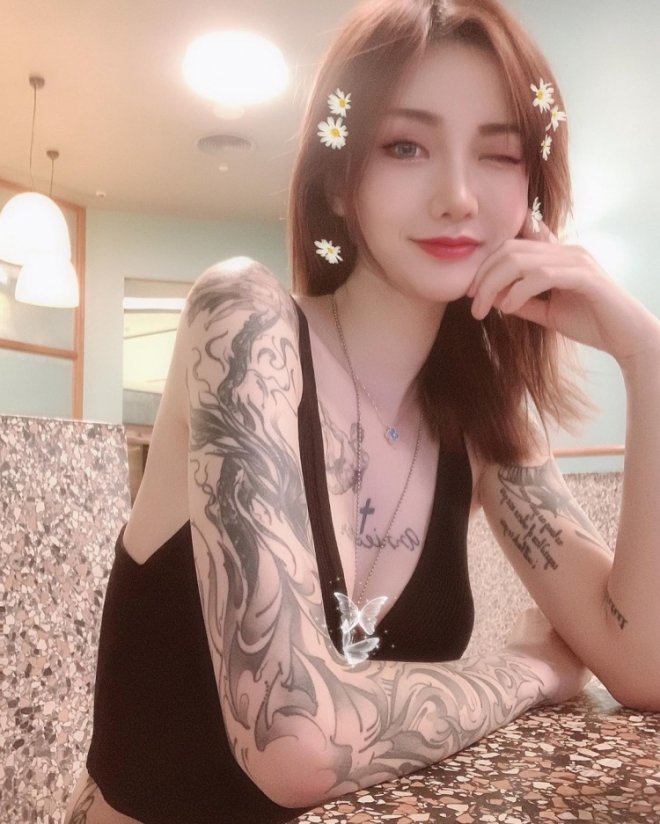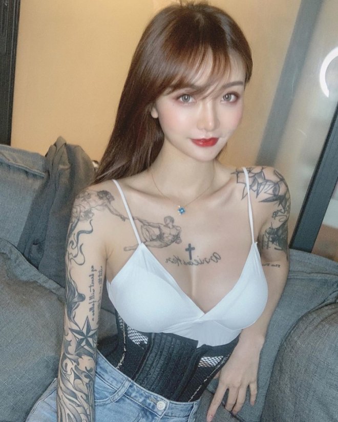 刺青位置太危險!胸口刺滿滿「乳山太飽滿全變形」顏值+身材等級頂天高:果然又瘦又胸
