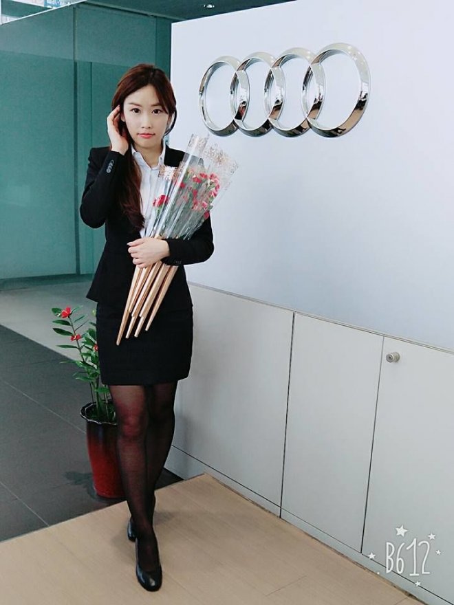 Audi女業務太極品!黑絲配短窄裙超母湯「胸前沉甸甸」白襯衫天天緊繃 網暴動:想簽了