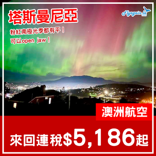 【塔斯曼尼亞】終於有減啦!睇粉紅南極光!澳洲航空來回塔斯曼尼亞連稅$5,186起!2025年6月18日或之前出發