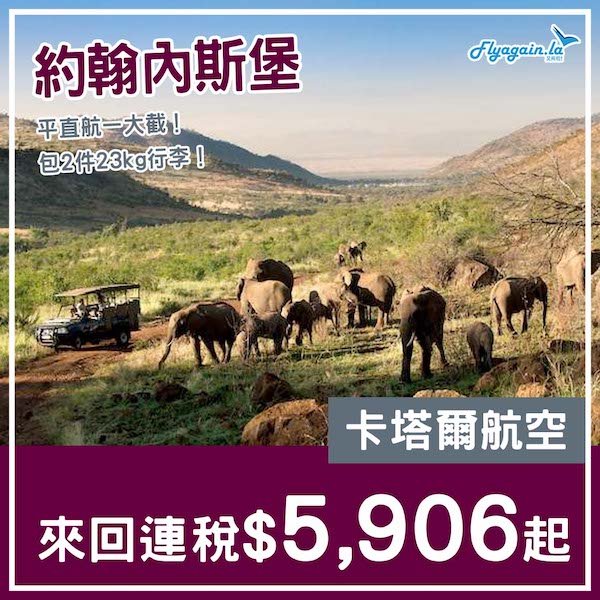 【南非】少有減價!平直航一大截!卡塔爾航空來回約翰內斯堡連稅$5,906起!2025年3月31日或之前出發