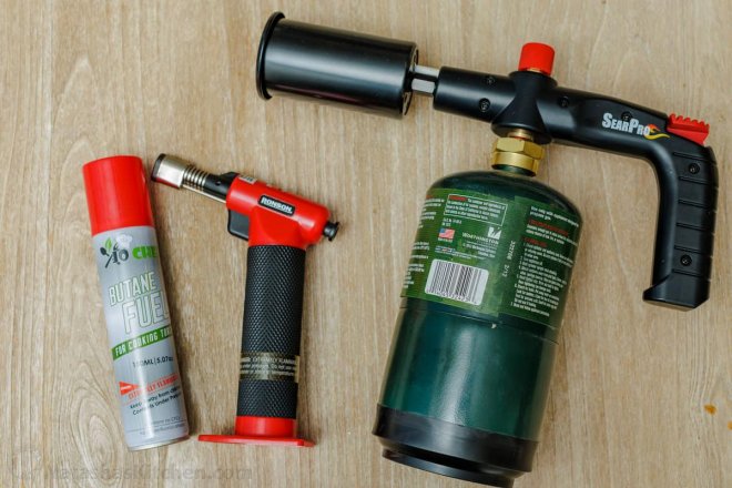 Caramelizing the Sugar ToppingTorching is by far our favorite way to caramelize sugar on creme brulee. A small, inexpensive handheld multi-purpose torch does the job. I picked up mine at Home Depot along with a can of butane, as the torches are refillable. Also, a flame-thrower torch borrowed from the garage will also work fine.