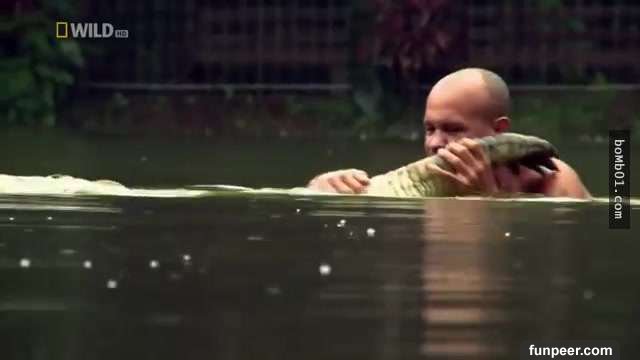 ▼採訪者完全對奇托和波裘的關係折服,他沒有見過鱷魚有這樣的行為。奇托告訴他因為波裘已經比較習慣他了,所以他可以近距離去接觸波裘,重點就是要友善,然後不要害怕,完全信任奇托,當他說停的時候不要轉身拔腿就跑。