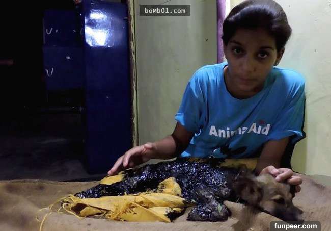 世界上各地都有流浪狗問題,流浪狗的生活非常艱困,要在垃圾堆翻找食物,也容易感染很多疾病;儘管有流浪狗組織來救助牠們,但無家可歸狗狗們還是常常陷入生命危險之中。印度有隻小狗牠渾身都被瀝青給覆蓋,在動彈不得的狀況下有個年輕的男孩發現了牠,並趕緊打給動物保護的組織。