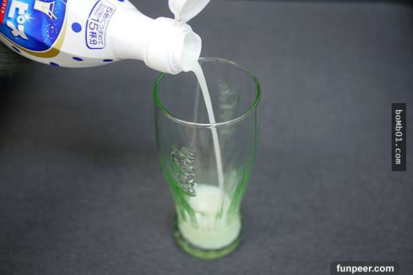 ▼其實調酒的方法很簡單,首先在杯中倒一些可爾必思,然後倒入啤酒。待啤酒的泡沫消除,再將剩下的啤酒倒進去。