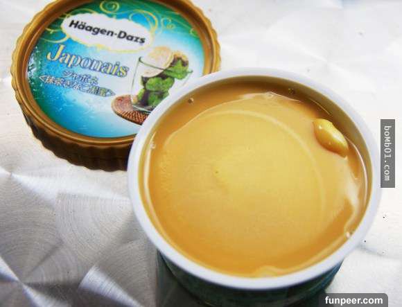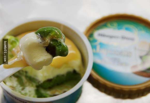 ▼不久前日本哈根達斯還推出了限定麻糬系列,但抹茶黃豆粉黑蜜冰淇淋卻不同,裡面少了麻糬,但多了抹茶。