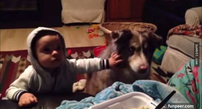 這隻狗狗實在看不下去寶寶學不會開口說「馬麻」,於是決定一展深藏已久的特技!