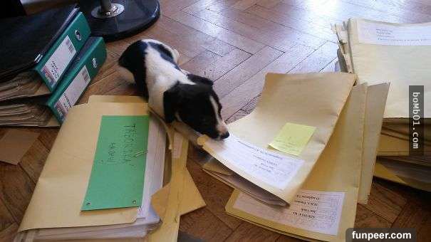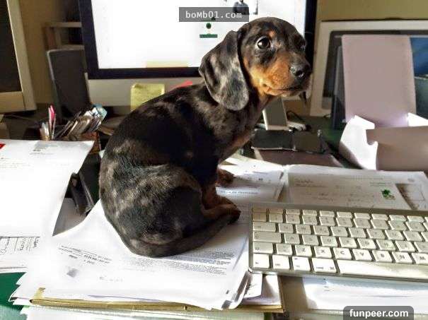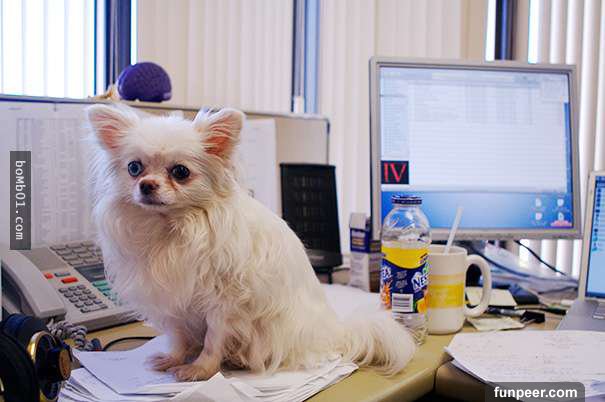 ▼1. 可愛的狗狗和繁忙的工作是最好的搭配。