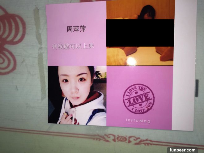 ▼報復男子還把啪啪啪影片截圖與其的生活照製作成雜誌並且到處宣揚:周萍萍只要有錢就能啪啪啪!