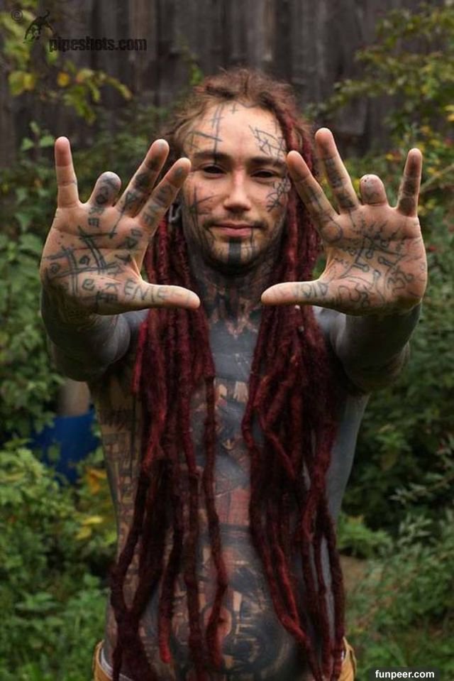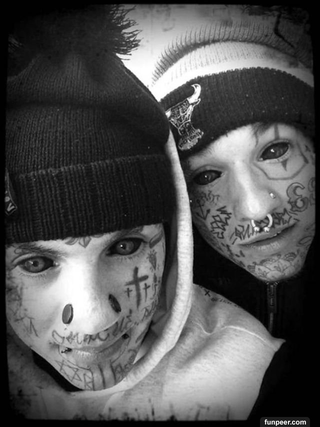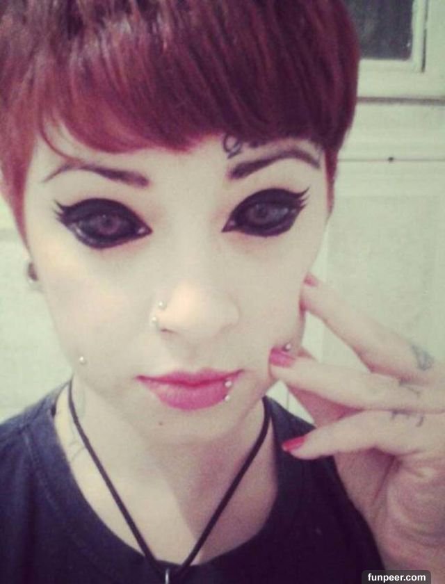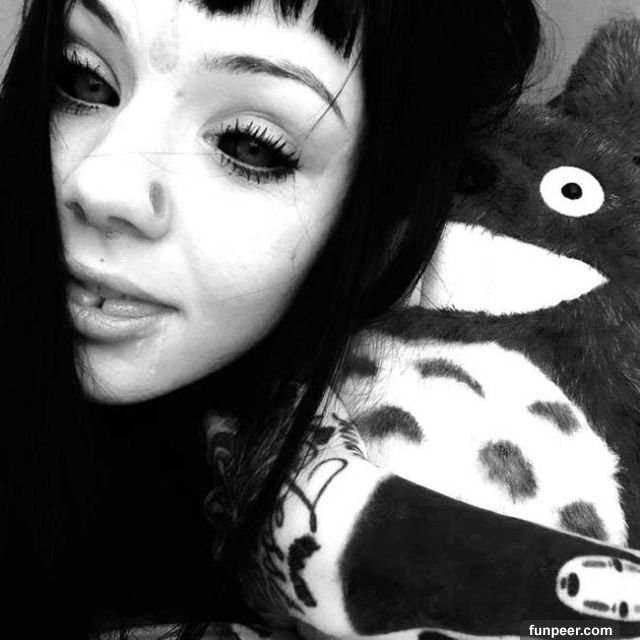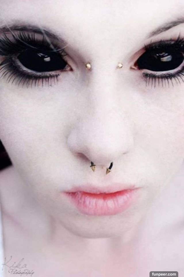 6. 經典全黑眼珠紋身,適合頭上多角多釘的造型