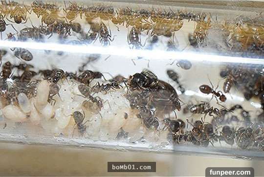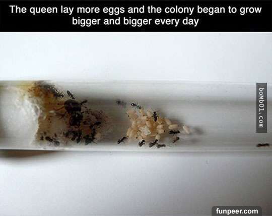 但是大家見過蟻后是如何產卵的嘛?有位網友偶然間在泳池旁捉了一隻蟻后,並放在試管中,觀察蟻后是如何建造出一個龐大的螞蟻帝國的。