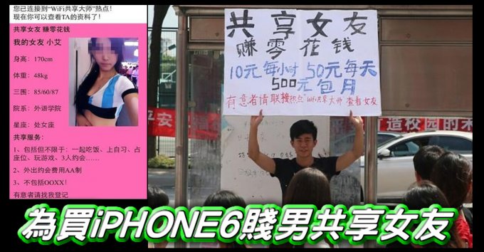 上海男為買 iPHONE 6 , 竟想出共享女友賺錢