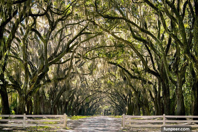 美國東南方喬治亞州坐落著古老小鎮薩凡納,閱讀過《飄》的朋友們對於這個小鎮或許並不陌生,倖免於南北戰爭戰火之下的薩凡納不同於紐約、波士頓等摩登城市,腳步彷彿還停留在19世紀,處處可見得時光的痕跡。作為美國200多年歷史的見證者,薩凡納城內常見一排排參天的老橡樹,而依附在橡樹上灰白垂墜的Spainish Moss,陽光照下來時的會給人一種雪霜的錯覺,更是薩凡納的特色景緻之一,電影《阿甘正傳》也在此城取了不少景,其中橡樹大道的景就是在著名景點Wormsloe Plantation取的。