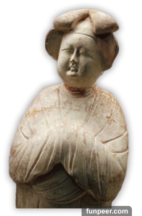唐朝出土的仕女俑,脖根處有明顯的衣痕