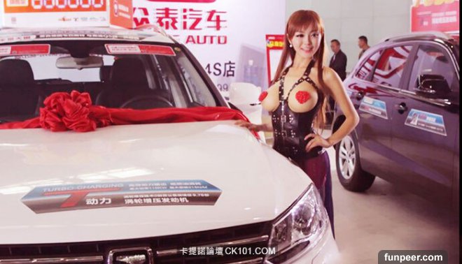 當天,在新疆國際會展中心的2號展廳,號稱「第一裸模」的潘春春一亮相,便引來陣陣騷動。這位車模披著長發,下半身穿紗裙,上半身近乎全裸,僅用2片乳貼遮擋住重要部位。據目擊者描述,此車模出場后在台上走了2圈台步,在展示車前擺了若干姿勢,在短短的幾分鐘內,該展位前迅速聚集了近百位觀展市民。