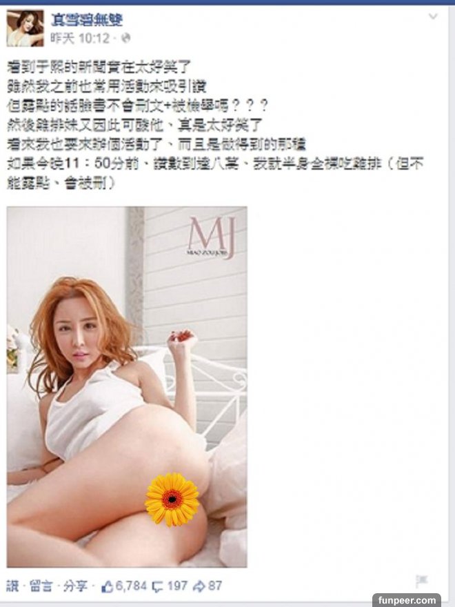 ▲雪碧洩私照嗆奶頭妹熙熙。(圖/擷自真雪碧無雙臉書粉絲頁,2015.3.31)