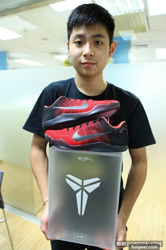 湖人一代傳奇巨星Kobe Bryant將在本賽季結束後正式退休,而他作為球員身分的最後一雙簽名鞋款「Nike Kobe 11」也即將上市。而在這之中,有限量20雙的「Kobe 11」由Kobe本人親自簽下大名後,裝在特製鞋盒分送到全球20個未知的城市中,等著球迷去發掘。在美國方面已經有三個城市出現Kobe鞋的蹤影,包括芝加哥與多倫多,但沒想到在亞洲區竟然也出現兩組,一雙在香港,而一雙… 在台灣!?NIKE在12月24日早上公布《KOBE XI 尋寶遊戲》的活動地點,無論是柯迷或是球鞋愛好者紛紛前往角逐,經過一番激戰,幸運得主終於出現… 年輕的球鞋收藏家「小濱」濱英格最後擊敗眾家好手脫穎而出,獲得全世界僅有20雙,並且是台灣唯一 一雙的Kobe 11 親筆簽名鞋。
