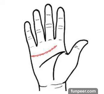 感情線如成鎖鏈狀(如圖),中斷或斷斷續續及有島紋附上,而且擁有一雙柔軟很富彈性的手的話,那麼,這樣的人性別無論男女,均屬易動情感的手。