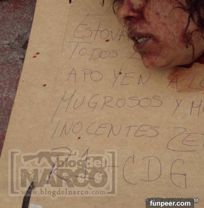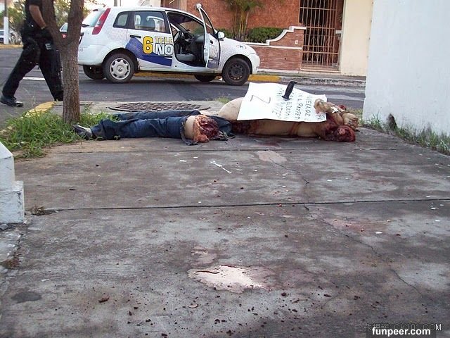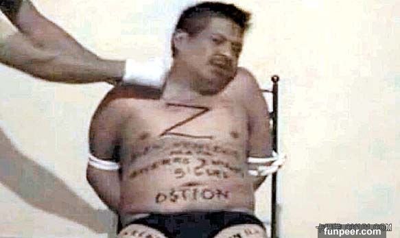 生前被zetas拍成影帶問話....死後被斬首,首級被放在冰桶內