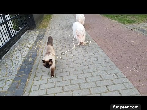 這下子逆天了!貓星人連主人都不鳥,卻讓兩隻豬小弟溜牠逛大街!可是事實上卻是...=
