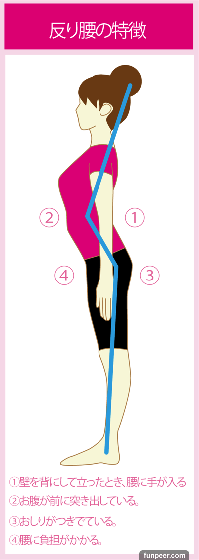 腰與牆壁間的空隙,可以輕易把手伸進去的女孩們,腰部如此彎曲的人,就是患有「腰椎過度前彎」的證據。