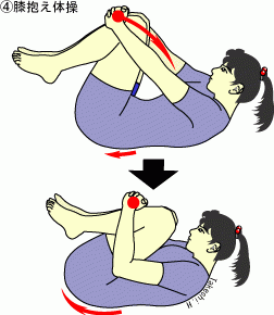■頭枕在床上的狀態,盡可能地確實伸展腰部,把腳拉近身體。保持這個身體捲成球狀的姿勢約10秒。