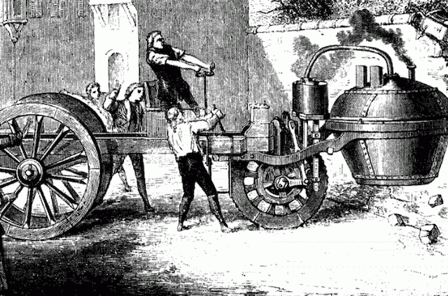 回到16世紀,有一個叫做南懷仁(Ferdinand Verbiest)的發明家製作了一個自推進式蒸汽汽車,作為玩具獻給了中國那時的皇帝。然而,這輛汽車太小,無法承受人的重量而毫無驅動力可言,畢竟在 發明家眼裡,它原本也只是一個小玩意兒。然而,到了17世紀,一個名為尼古拉斯.約瑟夫.庫諾(Nicholas Joseph Cugnot)的法國人發明瞭世界上第一輛真正意義上能載人的自驅動式汽車。這輛重約2.5噸的自驅動式製造業產物完全是龐然大物,操作性不強,在最佳狀 態下時速約能達到5公里每小時。由於限制大以及所需精力過多,它並不像看起來那麼實用且可觀,所以在福特發現了一個改進版之前,人們一直用動物來拖運貨 物。
