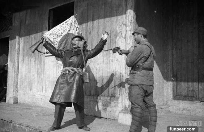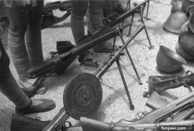 向日軍繳械投降的國軍士兵扛著馬克沁。