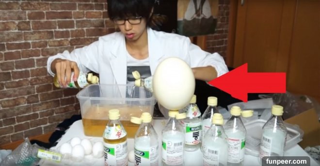超狂!這個人把「鴕鳥蛋」泡在醋裡面然後丟著不管!結果一週之後終於想到了,沒想到竟然...