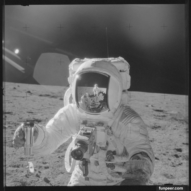 太陽神十一號竟如此回答:「這些寶貝好巨大,先生……很多……噢,天呀!你無法相信,我告訴你,那裡有其它的太空船在那裡,……在遠處的環形坑邊緣,排列著,……他們在月球上注視著我們……」前蘇聯科學家阿查查博士說:「根據我們截獲的電訊顯示,在太空船一登陸時,與UFO接觸之事馬上被報告出來。」一九六九年十一月廿日,太陽神十二號太空人康拉德和比安登月球,發現UFO。一九七一年八月太陽神十五號,一九七二年四月太陽神十六號,一九七二年十二月太陽神十七號,……等等的太空人也都在登陸月球時,見過UFO。