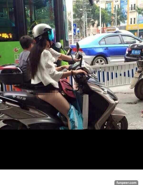 妹子竟然穿「超緊身迷你短裙」騎機車!接著路人拍下的這一幕,讓我害羞到不敢張開眼睛!
