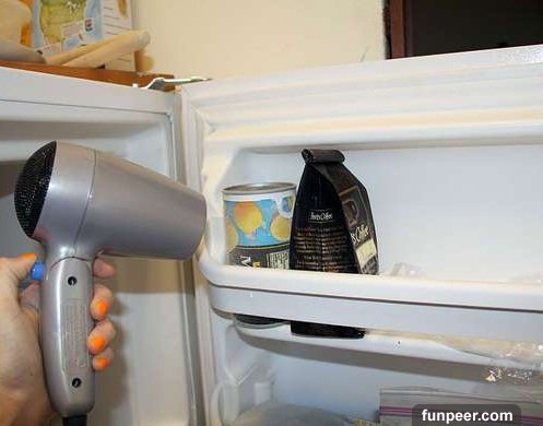 用吹風機吹食物,解凍速度會快很多。但解凍肉類時不要這樣做,把肉放進水中完全淹沒,等30分鐘就冷卻了。