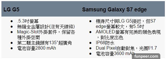 LG G5開箱評測。 底下是LG G5、Galaxy S7 edge比較會被大家拿出來的比較: