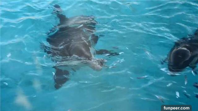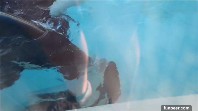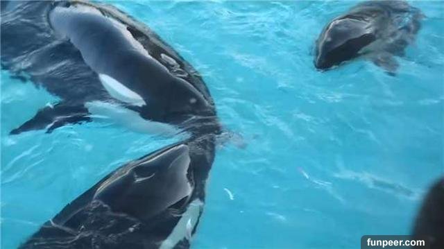 捕到海鳥的殺人鯨並沒有吃掉牠,游回池中向同伴展示勝利的喜悅。