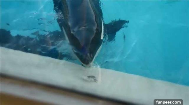 殺人鯨又稱為逆戟鯨、虎鯨,是海豚科中體型最大的一類,牠們是一種非常聰明的肉食性動物,擁有高度的社會化。雖然野生的殺人鯨不太會威脅人類的生命安全,但一些被人工飼養的殺人鯨會攻擊人類,甚至導致其死亡......剛剛前面有提到殺人鯨非常聰明,一頭被飼養的殺人鯨Kalia,叼了一條小魚到泳池邊,靜靜觀察想吃魚的海鳥們,將自己的食物讓給海鳥吃,這畫面多麼溫馨啊!如果你覺得Kalia是隻友善的殺人鯨就錯了,牠接下來的行為一定會讓你呆住......注意:以下的畫面可能會讓人感到不舒服,觀看前請三思。殺人鯨Kalia把小魚叼到池邊,引誘海鳥們上前吃小魚,聰明的牠知道後退兩步,降低海鳥的戒心。