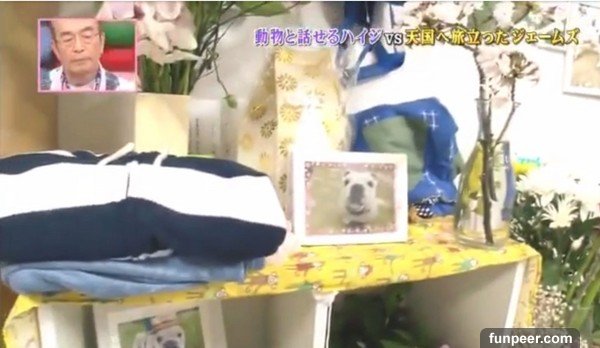 ▲小龐脫下自己的衣服,讓工作人員送到詹姆斯的追思會上。(圖/翻攝自dailymotion)據悉,詹姆斯大約是在2月時拍攝這段畫面的,怎料還來不及得到小龐的衣物,就敵不了痛苦逝世了,最後節目組也特地到小龐所在的地方,告訴牠詹姆斯已經離世的消息,而一向非常有靈性的牠似乎也擁有像人類一樣的情感,表情與動作看起來都相當難過,在籠子裡沉思了一段時間後,便把自己身上穿的連帽外套脫下來,工作人員也將這件外套拿到了詹姆斯追思會上,放在遺照的旁邊,而這段畫面播出後也立刻現場來賓紅了眼眶。