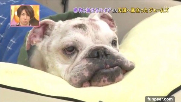 《狗狗猩猩大冒險》可愛的明星鬥牛犬詹姆斯在本月8日安詳離世。(翻攝自日網)知名節目《狗狗猩猩大冒險》由紅毛猩猩小龐和鬥牛犬詹姆斯一一完成主人下達的任務,逗趣的互動常帶給觀眾許多歡笑,可說是七八年級生的共同回憶,不過令人難過的是,日本阿蘇卡德利動物樂園,日前發出聲明,鬥牛犬詹姆斯已在本月8日安詳的過世了,享年12歲。