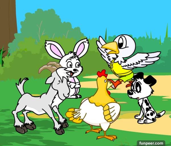 牛說:你怎麼不告訴我?我的角可以剜出狼的腸子馬說:你怎麼不告訴我?我的蹄子能踢碎狼的腦袋驢說:你怎麼不告訴我?我一聲吼叫,嚇破狼的膽豬說:你怎麼不告訴我?我用嘴一拱,就讓它摔下山去兔子說:你怎麼不告訴我?我跑得快,可以傳信呀