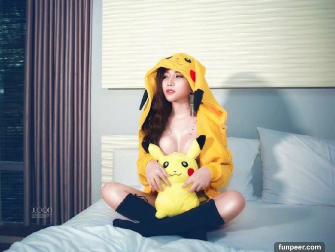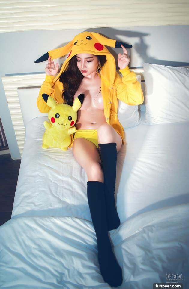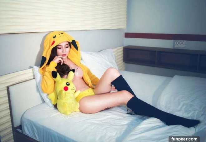 9.她也有其他照片啦~脫掉皮卡丘的外衣、換上泳裝,還是一樣火辣辣!