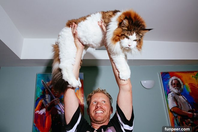 Samson的主人,Jonathan Zurbel說,Samson並沒有生病或是過重,牠就像是一個天生的橄欖球員,又壯又溫柔。Samson都會乖乖地坐在Jonathan的房門口,每天早上第一件事情就是去坐在主人的肚子上溫柔地叫他起床。真是一隻夢寐以求的貓咪!