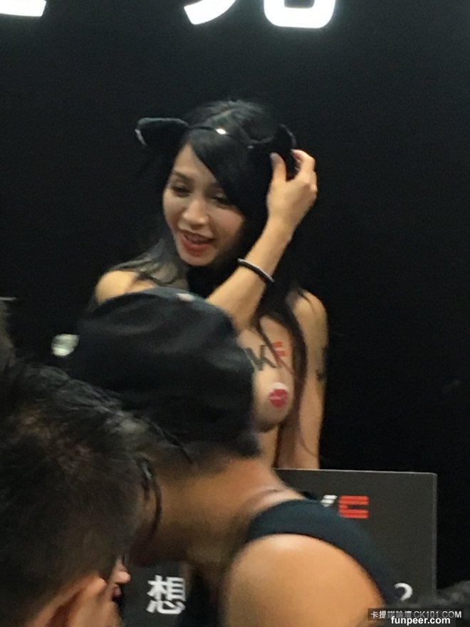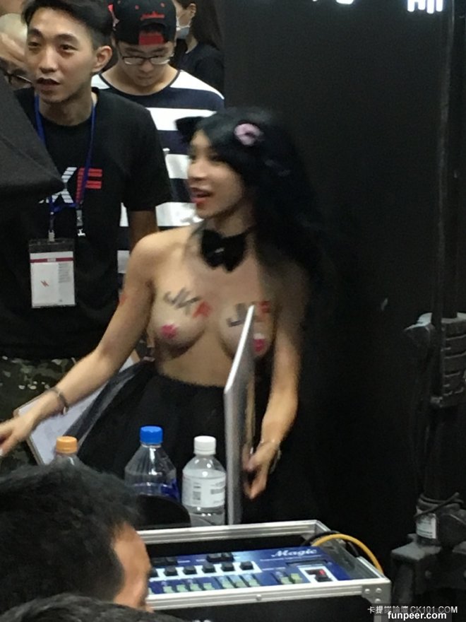 哇嗚~~小弟今天趕著第一場的成人展,就先秒衝一發惹!!今年的展場依舊大開眼界,先不說根本擠不到前面看的女優好了,現場的SG等級還算OK,經過去蕪存菁之後,小弟想要神兩個妹......第一個就是這位只貼胸貼的妹紙啦!!!!