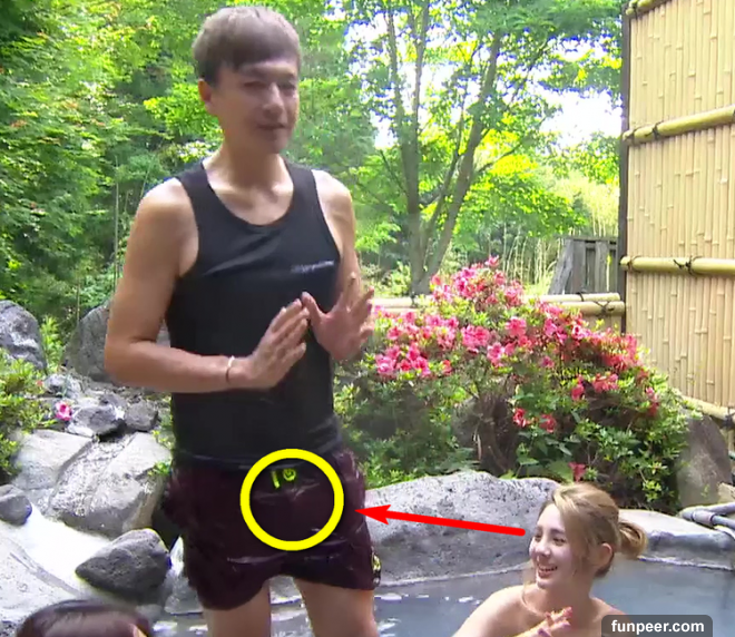 竟在溫泉池直接上演放送事故,下面勃起翹翹DER,