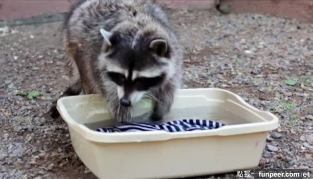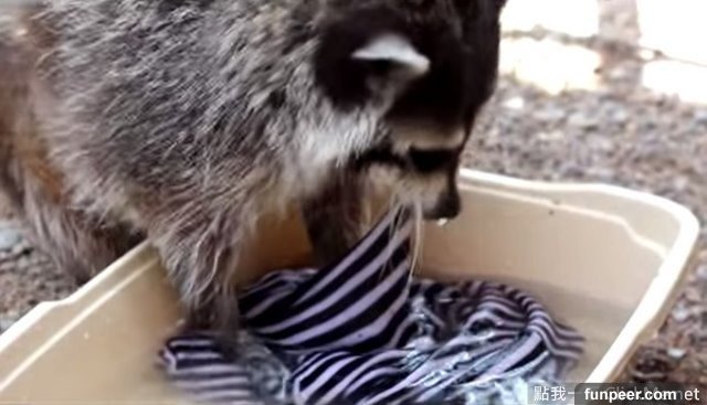 國外就有一家人有養浣熊,某天女主人在一旁忙時牠也在那洗洗洗,會幫忙做家事真棒!