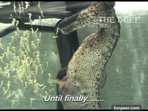 原來這是一隻正在生寶寶的公海馬啊!看著牠努力地讓寶寶們「噴」出來的模樣真的讓人覺得太興奮了,如此可遇不可求的罕見一幕竟然被這兩個幸運的潛水員看到,而且還有錄下影片讓大家都有機會「近距離」看到這一幕。分享出去給你的朋友們看看,他們一定也從沒看過公海馬生產的過程!來看看另一段更屌的海馬生產影片: