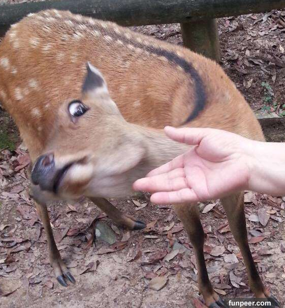 有位日本網友上傳了一張讓他受到創傷的照片,有天他很開心地要去動物園看鹿時,鹿給了他這個反應…