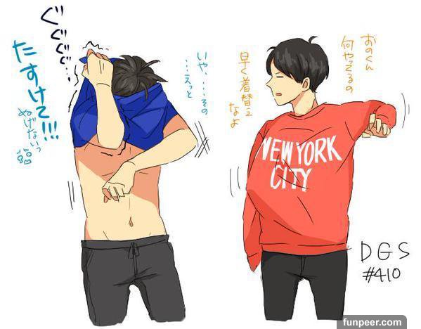 而男生衣服都比較寬鬆,從領口拉起就很好脫